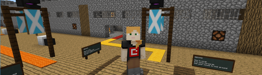 On Wednesday I ran two workshops for Edinburgh Napier staff on Minecraft. It was billed as a hands-on exploration with a view to thinking about how it could be used for learning and teaching. As it happened, it was an experience in how to manage vastly different skill levels where some participants jumped in confident in their ability to navigate a 3D world, while others struggled to orientate themselves. Feedback mentioned feeling quite uncomfortable and unsure of what to do. This was not accidental, as I was hoping for participants to experience what it is like as an inexpert learner in a wholly disorienting space. I was also hoping that they would collaborate in the world to do tasks together. I think I achieved the former, while the latter was less in evidence, although there was very lively conversations between participants in real life as they were sitting side-by-side in a computer lab.